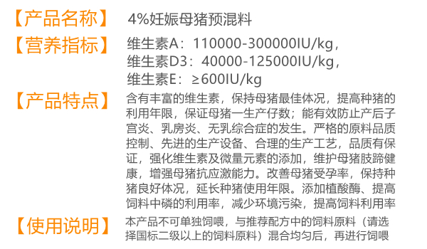 4%妊娠母豬預(yù)混料