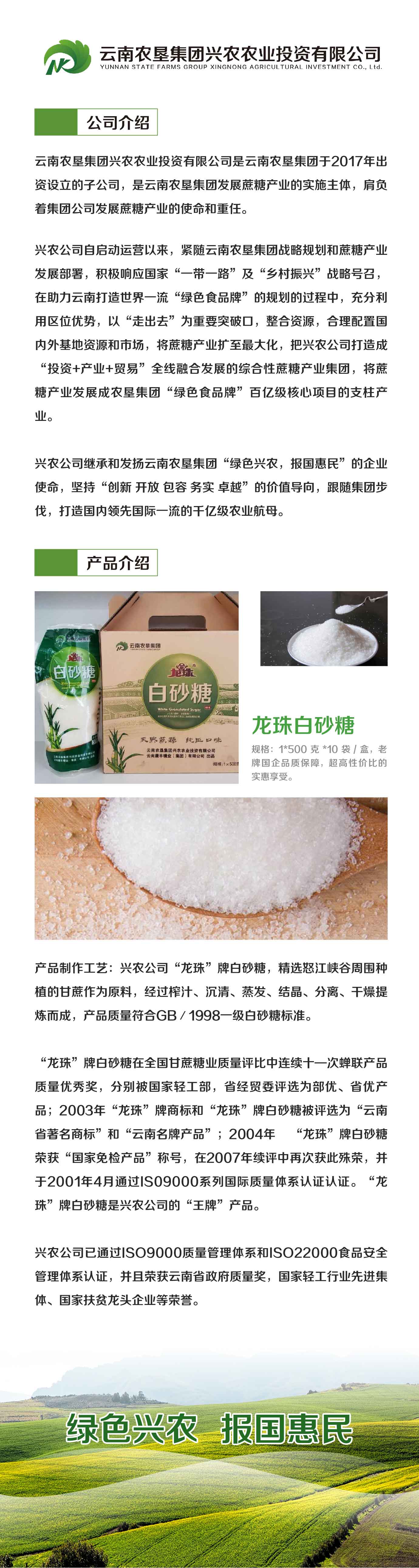 云南農墾集團興農農業投資有限公司是云南農墾集團于2017年出資設立的子公司,是云南農墾集團發展蔗糖產業的實施主體肩負著集團公司發展蔗糖產業的使命和重任。