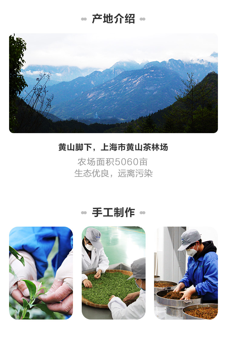 上海市黃山茶林場成立于1965年10月,坐落在安徽省黃山市黃山區譚家橋鎮境內,距黃山屯溪國際機場、高鐵黃山北站約40分鐘車程,緊臨國道G205、S103省道和G3京臺高速(合銅黃高速公路),位于黃山風景區東大門,占地約5060畝,現隸屬于光明食品集團旗下資管公司管理,是光明食品集團的職工療休養基地,擁有黃山農場派出所、社區、居委會、醫院等相關配套。上世紀六七十年代,數萬名上海知青曾在這里“上山下鄉”,留下了“安徽小上海”的美譽。有茶園700畝,水稻田270畝,油茶林1310畝,竹林800畝。專營“黃山牌”“茶林場牌”茶葉及特色農產品。與上海財經大學、上海工程技術大學、華東理工大學及安徽農業大學等在農業和旅游產業等不同領域進行產學研合作。