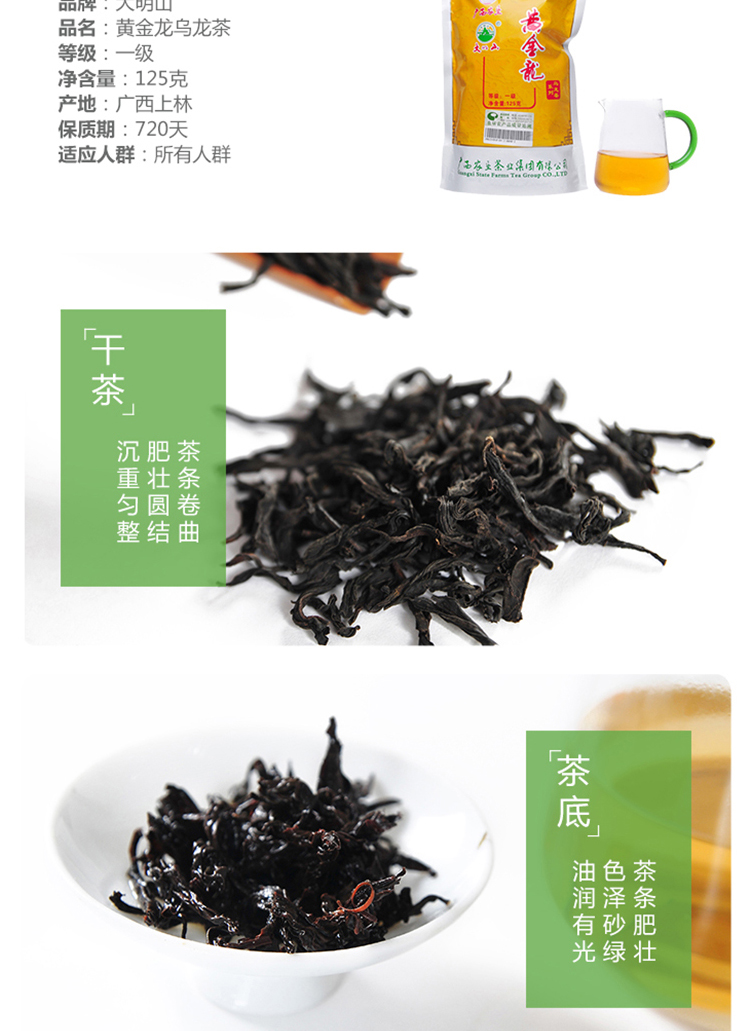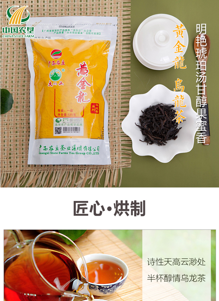 大明山 黃金龍烏龍茶 農(nóng)墾茶葉 大明山茶 廣西上林特產(chǎn) 一級(jí)烏龍茶 125g袋裝