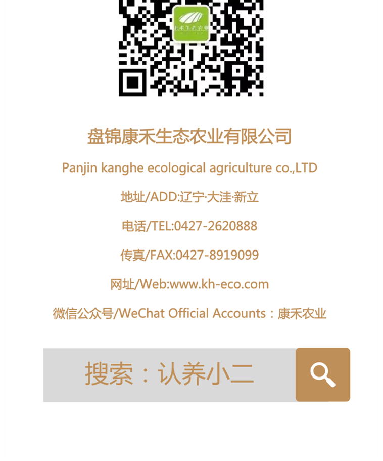 2016年3月經(jīng)大洼區(qū)人民政府研究同意、大洼區(qū)國(guó)有資產(chǎn)監(jiān)督管理局批準(zhǔn):在新立農(nóng)場(chǎng)注冊(cè)成立盤(pán)錦康禾生態(tài)農(nóng)業(yè)有限公司,公司性質(zhì)為國(guó)有獨(dú)資,注冊(cè)資金1000萬(wàn)元。公司是采用“互聯(lián)網(wǎng)+認(rèn)養(yǎng)農(nóng)業(yè)”模式推廣農(nóng)業(yè)認(rèn)籌項(xiàng)目的全產(chǎn)業(yè)鏈國(guó)有企業(yè)。經(jīng)營(yíng)以盤(pán)錦生態(tài)稻米為代表的“認(rèn)養(yǎng)小二”系列生態(tài)農(nóng)產(chǎn)品。