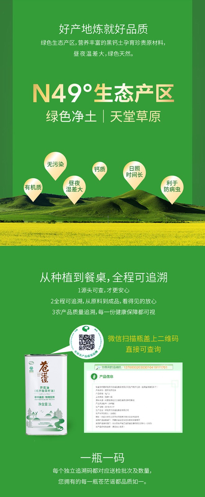 呼倫貝爾農墾出品蒼茫謠芥花油低芥酸菜籽油非轉基因1L*2禮盒