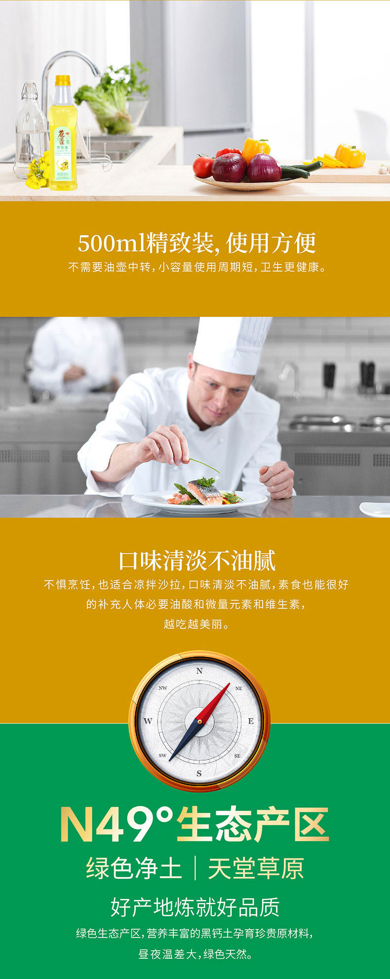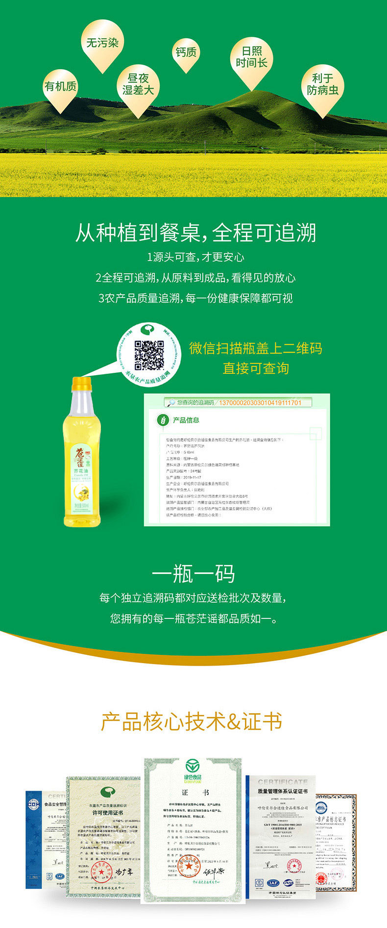 呼倫貝爾農墾出品蒼茫謠芥花油非轉基因食用油500ml*6